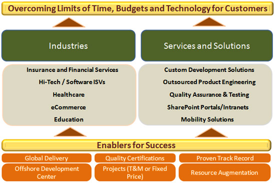 We work with a focus on the industries mentioned above and serve other industry segments also. Our enablers for success are our Development Centers in US